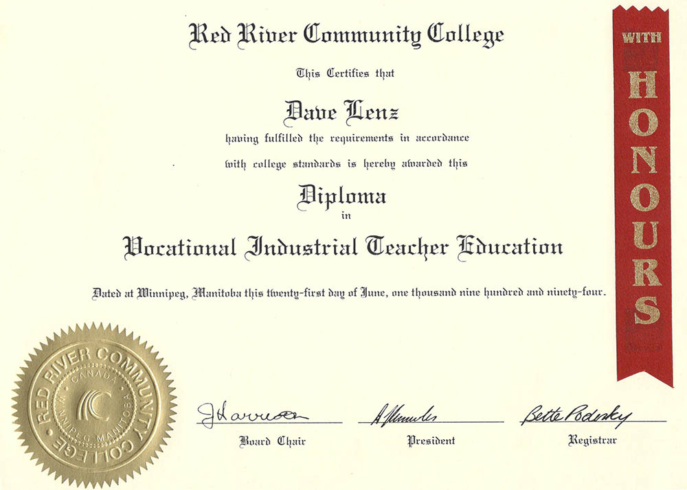 Some of Dave's certificates and diplomas can be seen below. If you have any questions, please feel free to contact Dave. When you are get the opportunity to be involved with so many different fields, you end up with a broad spectrum of knowledge. As you can see below, Dave's certifications are as diverse as his music likes...